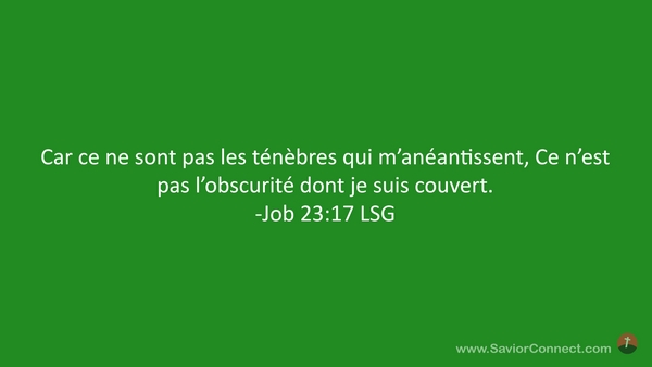 Car ce ne sont pas les ténèbres qui m'anéantissent, Ce n'est pas l'obscurité dont je suis couvert. -Job 23:17 LSG