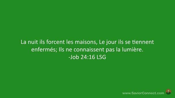 La nuit ils forcent les maisons, Le jour ils se tiennent enfermés; Ils ne connaissent pas la lumière. -Job 24:16 LSG