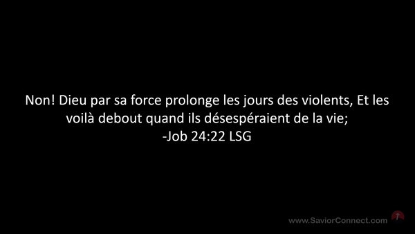 Non! Dieu par sa force prolonge les jours des violents, Et les voilà debout quand ils désespéraient de la vie; -Job 24:22 LSG