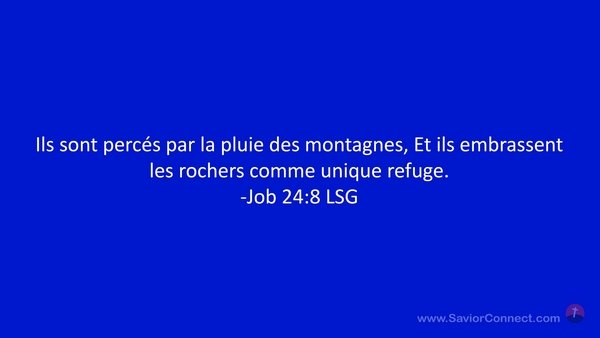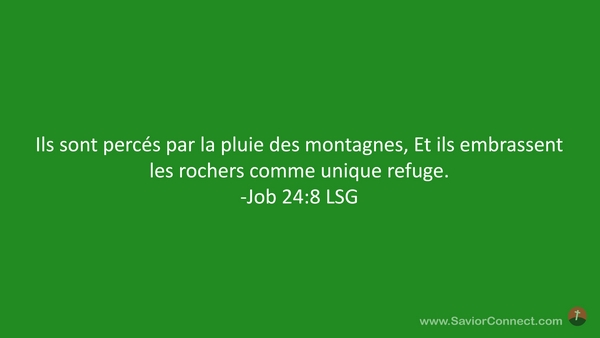 Ils sont percés par la pluie des montagnes, Et ils embrassent les rochers comme unique refuge. -Job 24:8 LSG