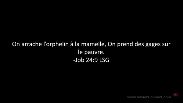 On arrache l'orphelin à la mamelle, On prend des gages sur le pauvre. -Job 24:9 LSG