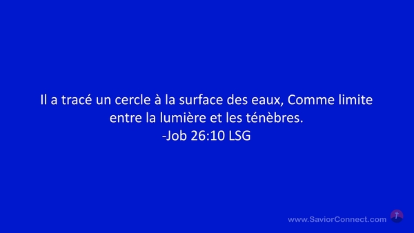 Il a tracé un cercle à la surface des eaux, Comme limite entre la lumière et les ténèbres. -Job 26:10 LSG