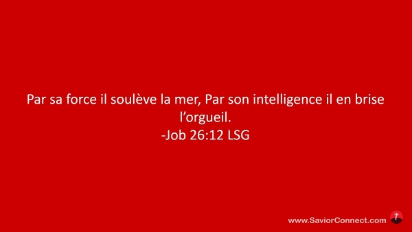 Par sa force il soulève la mer, Par son intelligence il en brise l'orgueil. -Job 26:12 LSG