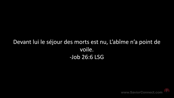 Devant lui le séjour des morts est nu, L'abîme n'a point de voile. -Job 26:6 LSG