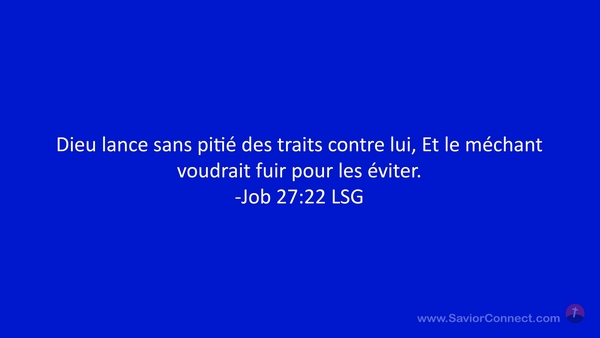 Dieu lance sans pitié des traits contre lui, Et le méchant voudrait fuir pour les éviter. -Job 27:22 LSG