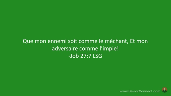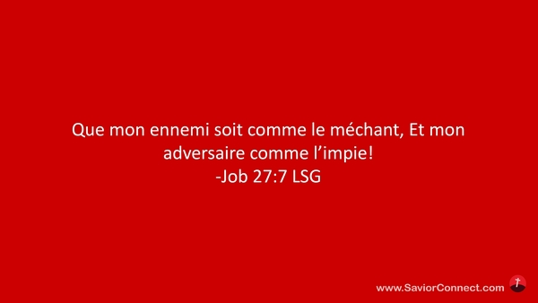 Que mon ennemi soit comme le méchant, Et mon adversaire comme l'impie! -Job 27:7 LSG