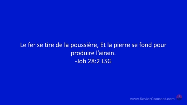 Le fer se tire de la poussière, Et la pierre se fond pour produire l'airain. -Job 28:2 LSG