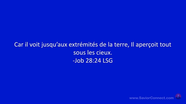 Car il voit jusqu'aux extrémités de la terre, Il aperçoit tout sous les cieux. -Job 28:24 LSG