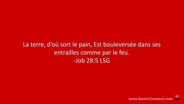 La terre, d'où sort le pain, Est bouleversée dans ses entrailles comme par le feu. -Job 28:5 LSG
