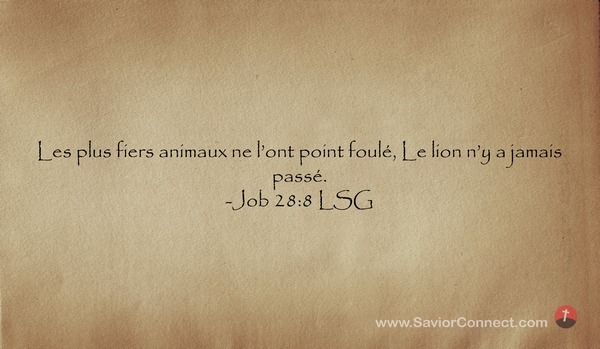 Les plus fiers animaux ne l'ont point foulé, Le lion n'y a jamais passé. -Job 28:8 LSG