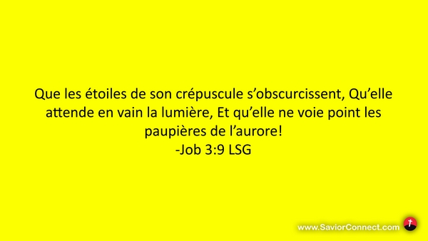Que les étoiles de son crépuscule s'obscurcissent, Qu'elle attende en vain la lumière, Et qu'elle ne voie point les paupières de l'aurore! -Job 3:9 LSG