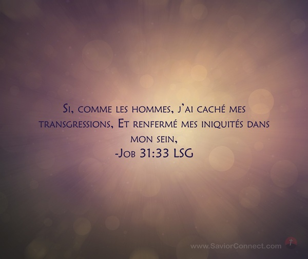 Si, comme les hommes, j'ai caché mes transgressions, Et renfermé mes iniquités dans mon sein, -Job 31:33 LSG