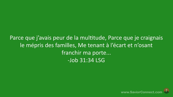 Parce que j'avais peur de la multitude, Parce que je craignais le mépris des familles, Me tenant à l'écart et n'osant franchir ma porte... -Job 31:34 LSG