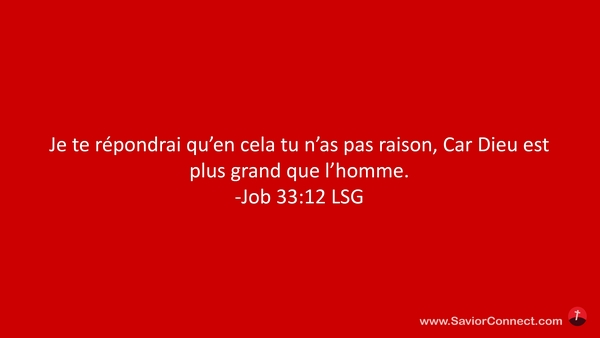 Je te répondrai qu'en cela tu n'as pas raison, Car Dieu est plus grand que l'homme. -Job 33:12 LSG