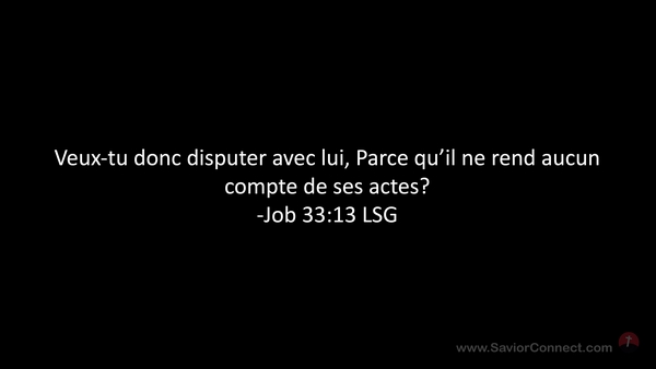 Veux-tu donc disputer avec lui, Parce qu'il ne rend aucun compte de ses actes? -Job 33:13 LSG