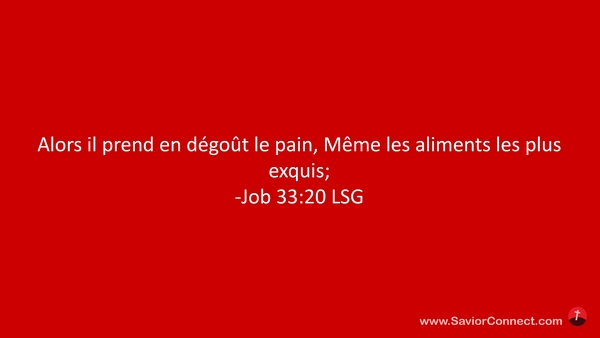 Alors il prend en dégoût le pain, Même les aliments les plus exquis; -Job 33:20 LSG