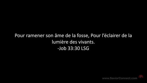 Pour ramener son âme de la fosse, Pour l'éclairer de la lumière des vivants. -Job 33:30 LSG