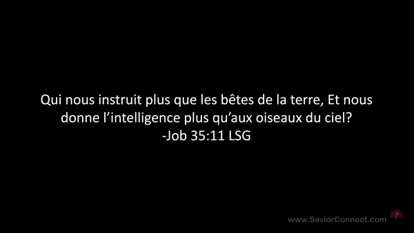 Qui nous instruit plus que les bêtes de la terre, Et nous donne l'intelligence plus qu'aux oiseaux du ciel? -Job 35:11 LSG