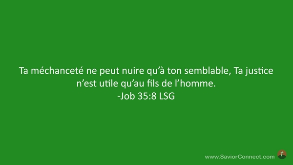 Ta méchanceté ne peut nuire qu'à ton semblable, Ta justice n'est utile qu'au fils de l'homme. -Job 35:8 LSG