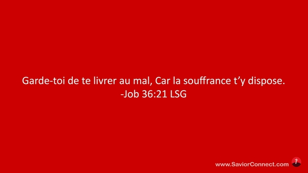 Garde-toi de te livrer au mal, Car la souffrance t'y dispose. -Job 36:21 LSG
