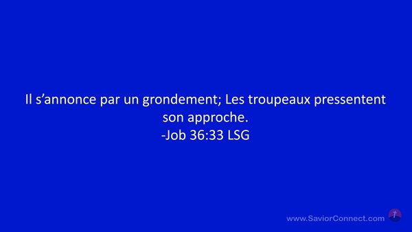 Il s'annonce par un grondement; Les troupeaux pressentent son approche. -Job 36:33 LSG
