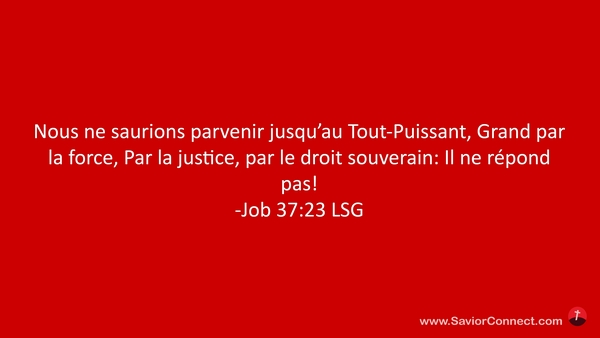 Nous ne saurions parvenir jusqu'au Tout-Puissant, Grand par la force, Par la justice, par le droit souverain: Il ne répond pas! -Job 37:23 LSG
