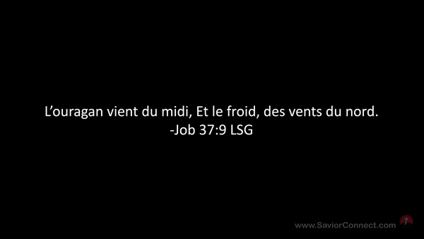 L'ouragan vient du midi, Et le froid, des vents du nord. -Job 37:9 LSG