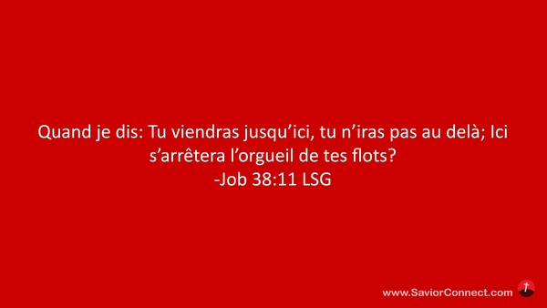 Quand je dis: Tu viendras jusqu'ici, tu n'iras pas au delà; Ici s'arrêtera l'orgueil de tes flots? -Job 38:11 LSG