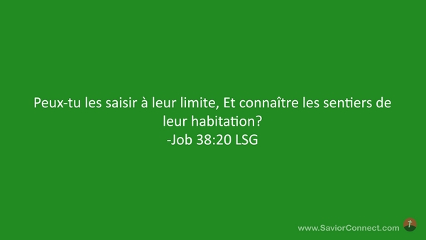 Peux-tu les saisir à leur limite, Et connaître les sentiers de leur habitation? -Job 38:20 LSG