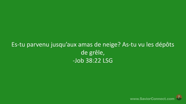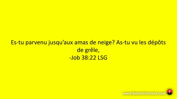 Es-tu parvenu jusqu'aux amas de neige? As-tu vu les dépôts de grêle, -Job 38:22 LSG