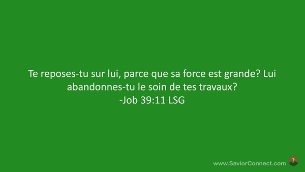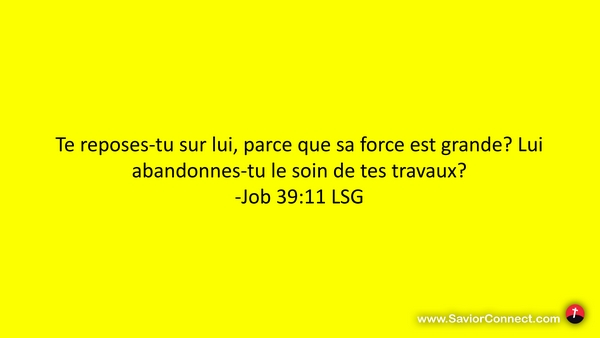 Te reposes-tu sur lui, parce que sa force est grande? Lui abandonnes-tu le soin de tes travaux? -Job 39:11 LSG
