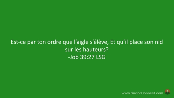 Est-ce par ton ordre que l'aigle s'élève, Et qu'il place son nid sur les hauteurs? -Job 39:27 LSG