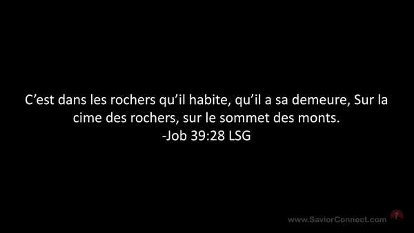 C'est dans les rochers qu'il habite, qu'il a sa demeure, Sur la cime des rochers, sur le sommet des monts. -Job 39:28 LSG