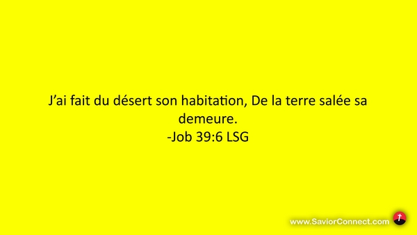 J'ai fait du désert son habitation, De la terre salée sa demeure. -Job 39:6 LSG