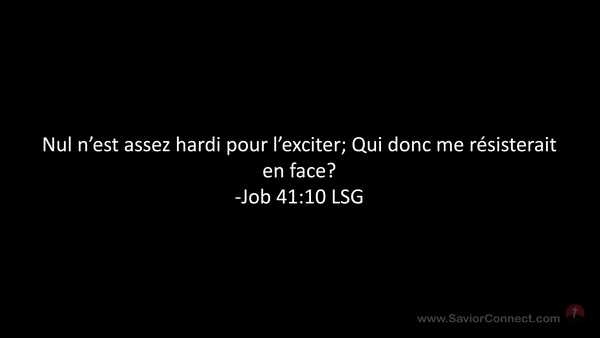 Nul n'est assez hardi pour l'exciter; Qui donc me résisterait en face? -Job 41:10 LSG