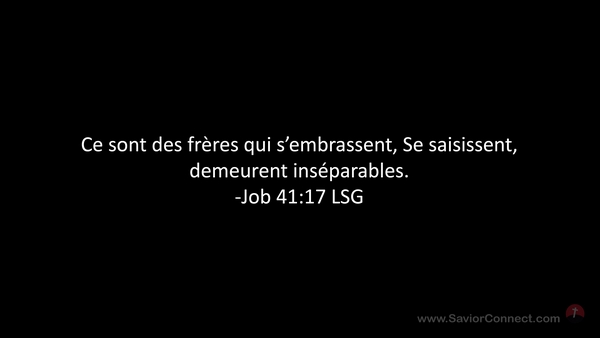 Ce sont des frères qui s'embrassent, Se saisissent, demeurent inséparables. -Job 41:17 LSG