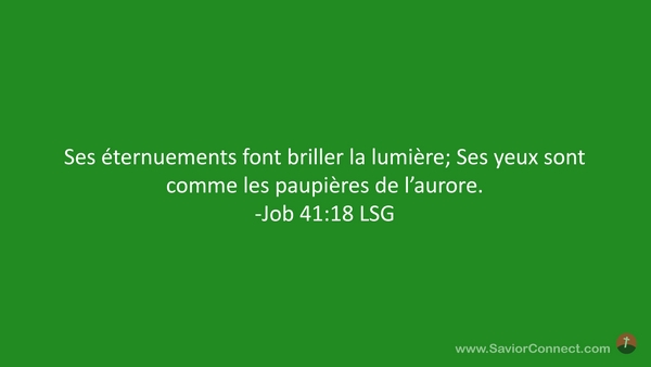 Ses éternuements font briller la lumière; Ses yeux sont comme les paupières de l'aurore. -Job 41:18 LSG