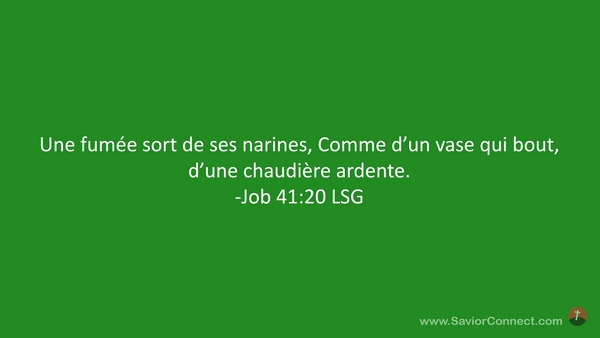 Une fumée sort de ses narines, Comme d'un vase qui bout, d'une chaudière ardente. -Job 41:20 LSG