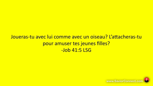 Joueras-tu avec lui comme avec un oiseau? L'attacheras-tu pour amuser tes jeunes filles? -Job 41:5 LSG