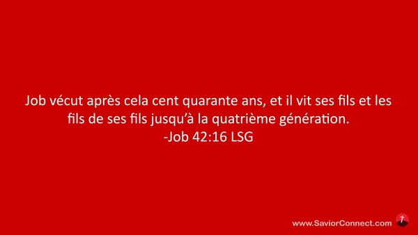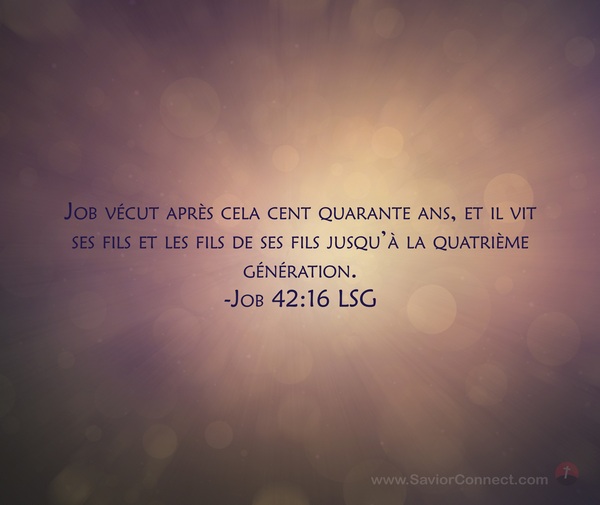 Job vécut après cela cent quarante ans, et il vit ses fils et les fils de ses fils jusqu'à la quatrième génération. -Job 42:16 LSG