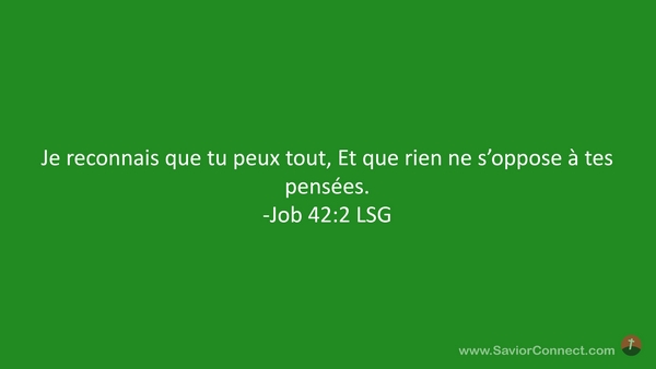 Je reconnais que tu peux tout, Et que rien ne s'oppose à tes pensées. -Job 42:2 LSG