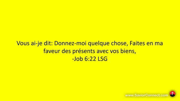 Vous ai-je dit: Donnez-moi quelque chose, Faites en ma faveur des présents avec vos biens, -Job 6:22 LSG