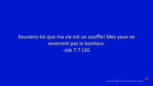 Souviens-toi que ma vie est un souffle! Mes yeux ne reverront pas le bonheur. -Job 7:7 LSG