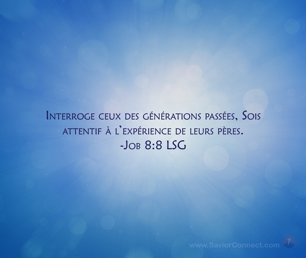 Interroge ceux des générations passées, Sois attentif à l'expérience de leurs pères. -Job 8:8 LSG