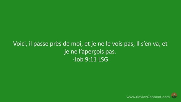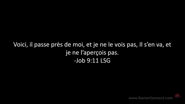 Voici, il passe près de moi, et je ne le vois pas, Il s'en va, et je ne l'aperçois pas. -Job 9:11 LSG