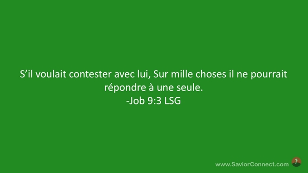 S'il voulait contester avec lui, Sur mille choses il ne pourrait répondre à une seule. -Job 9:3 LSG