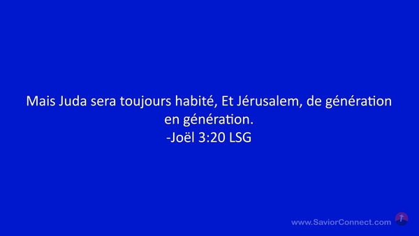 Mais Juda sera toujours habité, Et Jérusalem, de génération en génération. -Joël 3:20 LSG