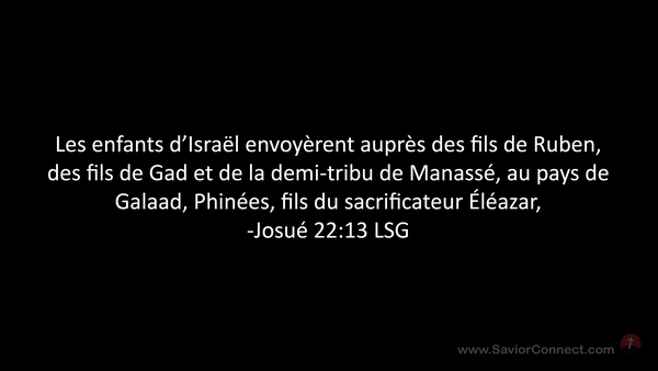 Les enfants d'Israël envoyèrent auprès des fils de Ruben, des fils de Gad et de la demi-tribu de Manassé, au pays de Galaad, Phinées, fils du sacrificateur Éléazar, -Josué 22:13 LSG