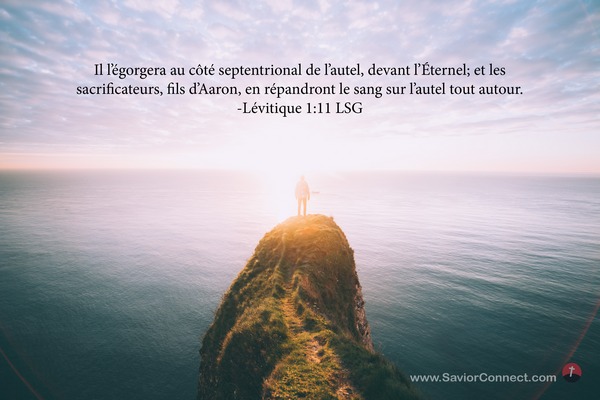 Il l'égorgera au côté septentrional de l'autel, devant l'Éternel; et les sacrificateurs, fils d'Aaron, en répandront le sang sur l'autel tout autour. -Lévitique 1:11 LSG