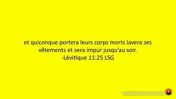 et quiconque portera leurs corps morts lavera ses vêtements et sera impur jusqu'au soir. -Lévitique 11:25 LSG